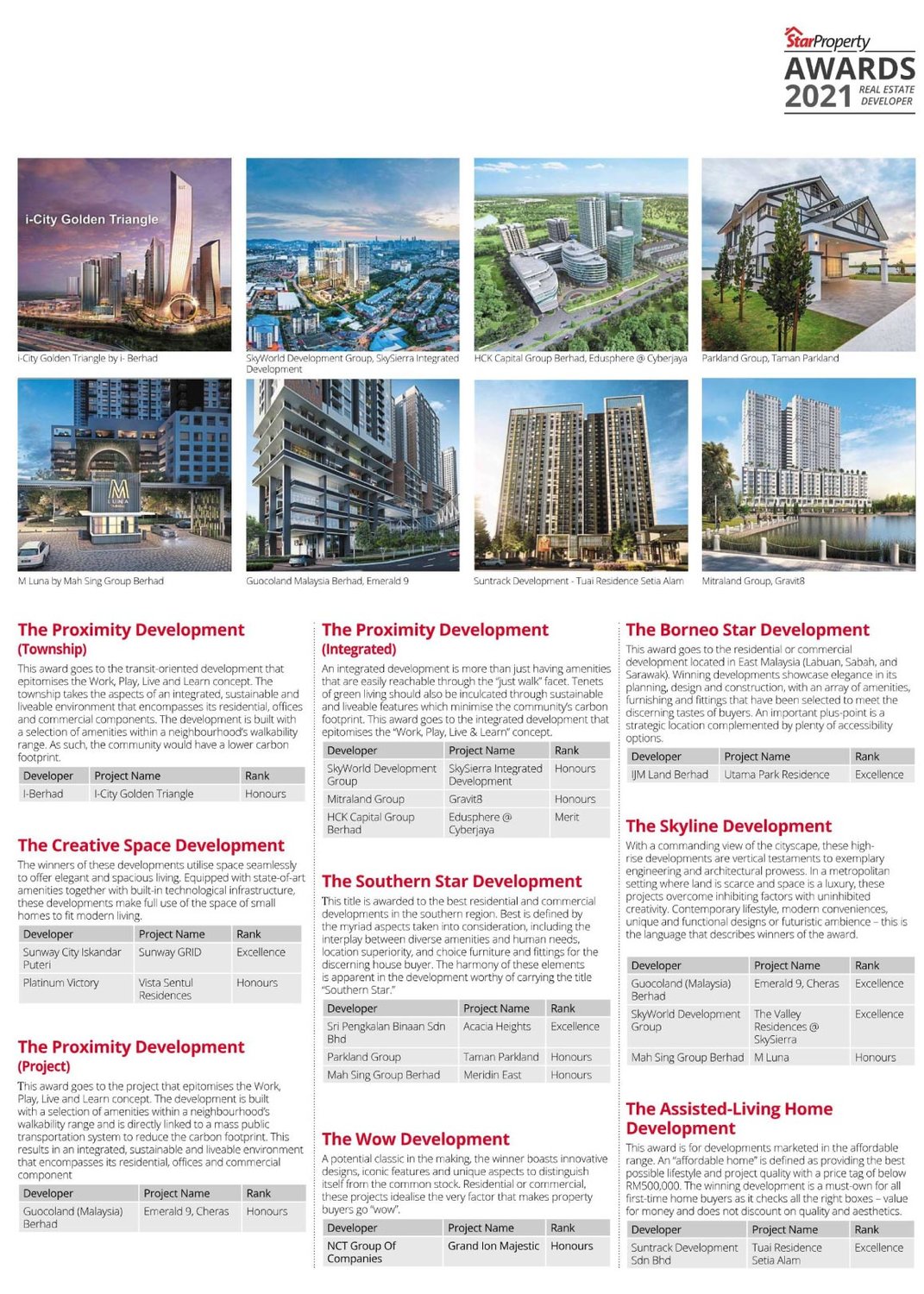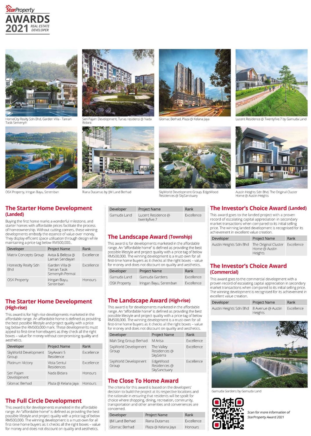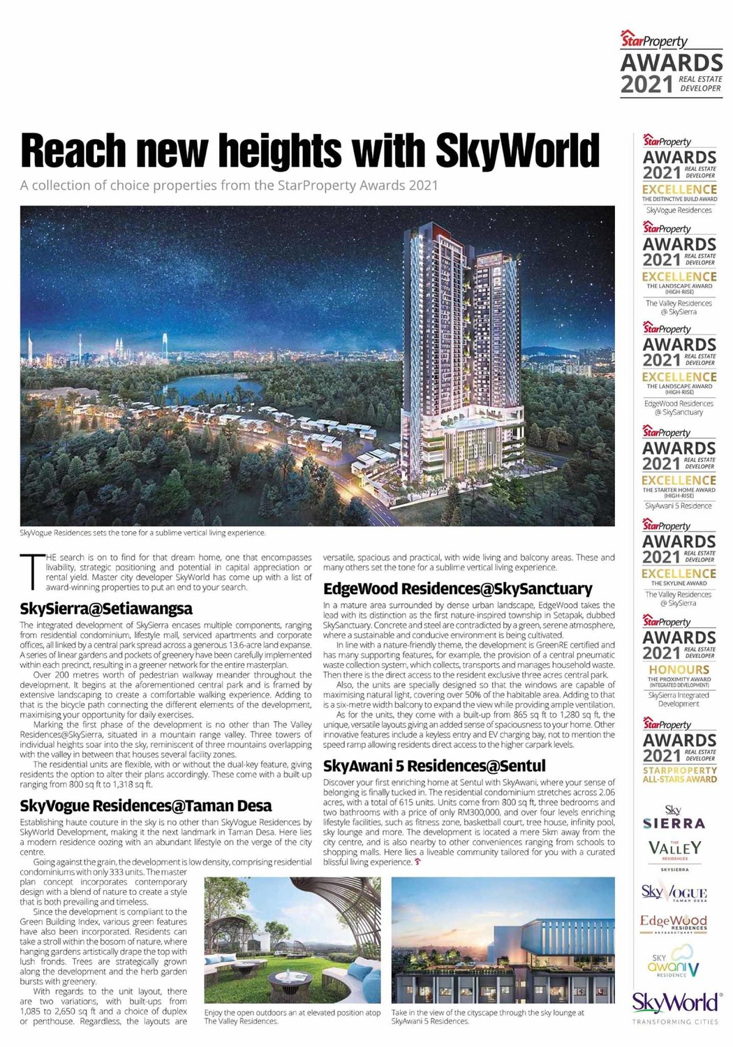 On 30 June 2021, SkyWorld has bagged 7 prestigious awards and we owe this to all our stakeholders. We are grateful to StarProperty and its panel of judges for recognising our passion and hard work. These achievements will motivate us to strive toward EXCELLENCE and remain true to our mission of enhancing the living experience for the city communities.