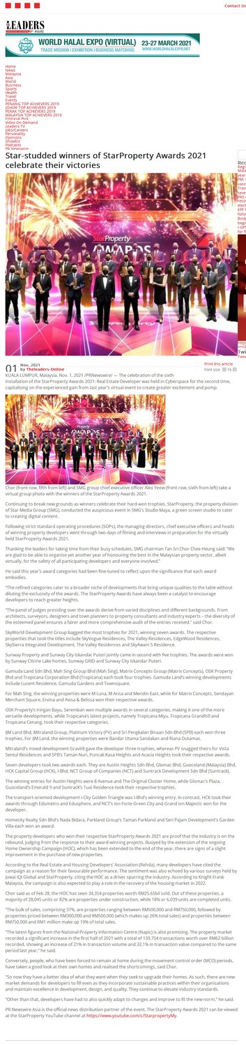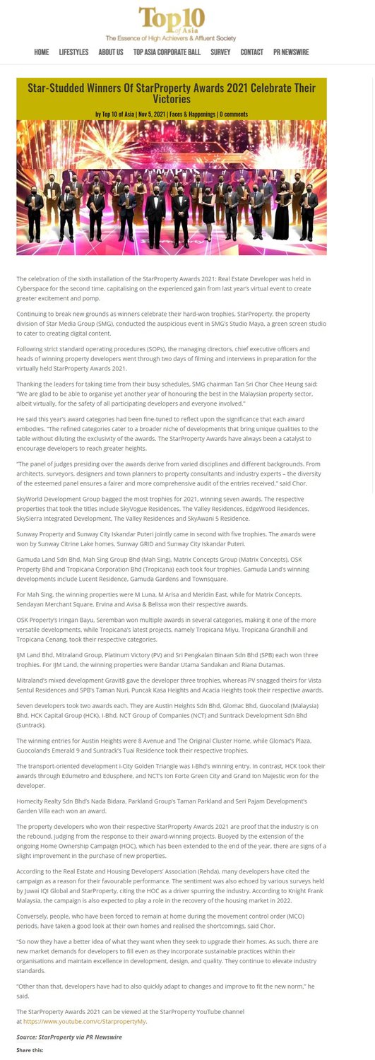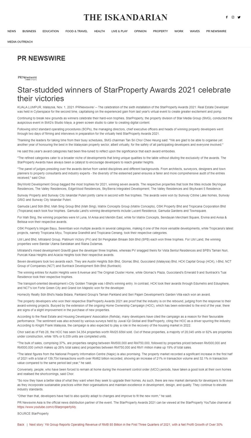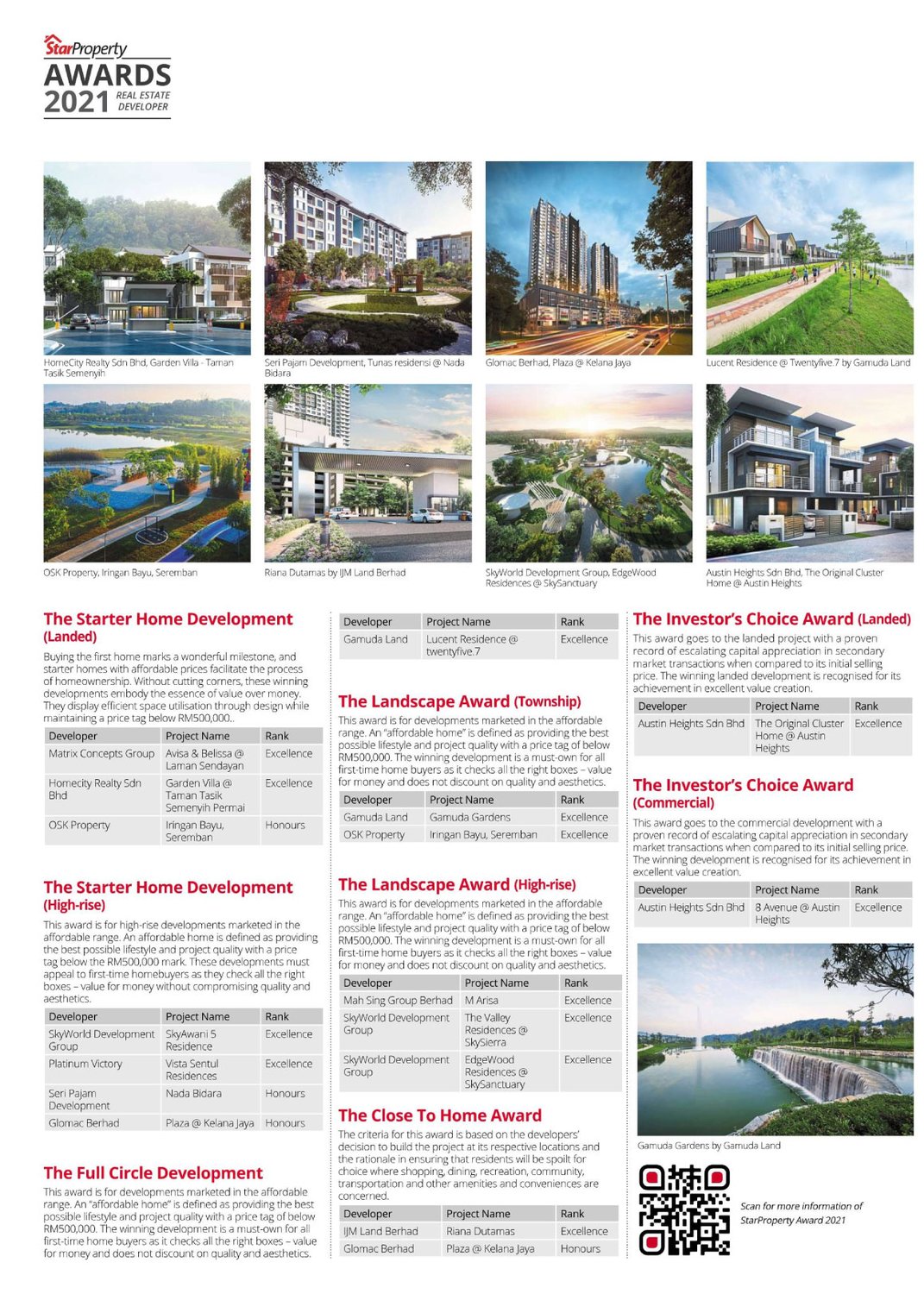 On 30 June 2021, SkyWorld has bagged 7 prestigious awards and we owe this to all our stakeholders. We are grateful to StarProperty and its panel of judges for recognising our passion and hard work. These achievements will motivate us to strive toward EXCELLENCE and remain true to our mission of enhancing the living experience for the city communities.