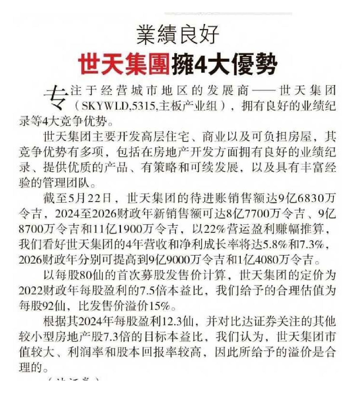 “We wish to thank our investors for their unwavering trust and support. SkyWorld intends to declare a yearly dividend with a target payout ratio of 20% of its profit after tax attributable to owners of the company on a consolidated basis,” he added.