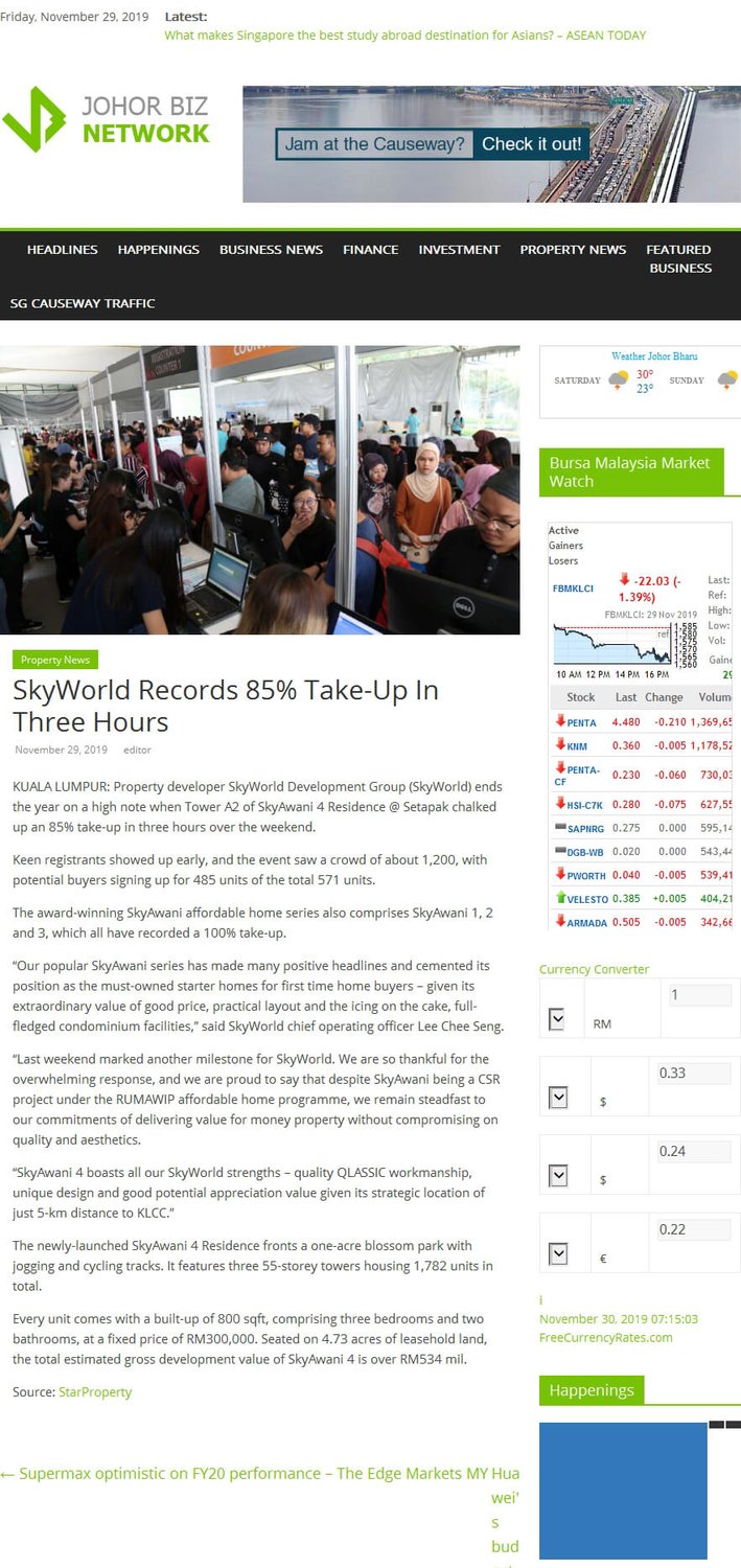 SkyWorld Recorded 85% Take-Up In 3 Hours!